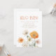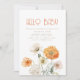 Se você ama um estilo simples de boho, este convite é certo para você. O convite apresenta um design elegante, com um fundo branco e suave. No centro, os detalhes do partido são lindamente escritos num texto laranja exuindo um ar de sofisticação. No fundo, as flores silvestres macios e cremosas sentam-se suavemente. Convide convidados para a sua festa de chá de fraldas em estilo. A cor e o texto em segundo plano são editáveis.