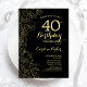 Convite de festas Floral Dourado preto. Design minimalista moderno com desenhos botânicos em destaque, folha de ouro falsa e letra de script de tipografia. Simples trendy convida cartão perfeito para uma festa de na moda. Pode ser personalizado para qualquer idade. Impressos convites Zazzle ou modelo de impressão digital instantânea para download.