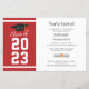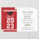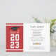 Adicione seu ano de graduação, nome e detalhes do local com data para este moderno fundo vermelho e branco negrito com convite de festa de formatura de tipografia negra usando nosso botão "Personalizar". Convites simples de festa de formatura com rolagem e boné de formatura com cartazes modernos.