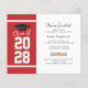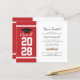 Adicione seu ano de graduação, nome e detalhes do local com data para este moderno fundo vermelho e branco negrito com convite de festa de formatura de tipografia negra usando nosso botão "Personalizar" acima