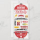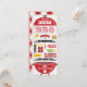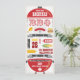 Uma churrasqueira vermelha com fundo de madeira leve. Este convite divertido para festa de churrasco é decorado com banners, mostarda e garrafas de ketchup, cachorro-quente em um garfo, placa de papel, garfo e faca, hambúrguer, milho e perna de frango. A parte de trás do cartão está decorada com um padrão de gingham bonito. Personalize com seu próprio texto. Ilustração original por pj_design / jammydesign.