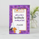 O convite da festa apresenta dois pequenos fantasmas e um gato preto esculpindo abóboras. a borda é roxa com teias e aranhas pretas. Personalize a área de retorno de convite com todas as informações de sua parte.