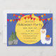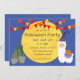 Lama branca e bonita no chapéu de bruxa roxa que carregando um jack o'lantern. A colorida bandeira do outono, a lua amarela cheio, e cacto florescente para um lindo e divertido Dia das Bruxas. Excelente para uma festa infantil.