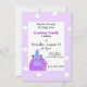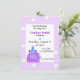 Um hipopótamo roxo vestindo um chapéu de festa, pronto para uma festa de aniversário acentua este convite divertido. Uma fronteira de massa com bolinhas brancas adiciona um apelo divertido. Personalize com todas as suas informações conforme desejado.