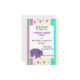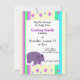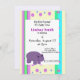 Um hipopótamo roxo grande com uma doce expressão no rosto, pronto para uma festa de aniversário acentua este divertido convite. Uma fronteira de listras e pontos acrescenta um apelo divertido. Personalize com todas as suas informações conforme desejado.