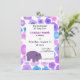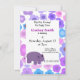 Um hipopótamo roxo grande com uma doce expressão no rosto, pronto para uma festa de aniversário acentua este divertido convite. Uma fronteira de flores brancas adiciona um apelo divertido. Personalize com todas as suas informações conforme desejado.