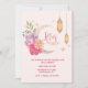 Um convite de janto Iftar, em aquarela, com lanterna, crescente floral e itens de serviço. O cartão é fácil de personalizar com seu texto, fonte, cor da fonte, opções de forma de papel e opções de tipos de papel. A paleta de cor neutra da lua crescente e cor-de-água rosa parecem atordoantes na frente enquanto o rosa escuro contrastando ao contrário faz com que este convite de festas de flecha seja realmente único.