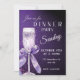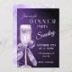 Um convite de festas jante glamouroso e elegante com um fundo brilhante de brilho roxo e um belo design de vidro de champanhe. É uma maneira perfeita e divertida de convidar convidados para o seu evento.