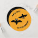 Pequenos morcegos bonitos desejando um feliz 'morcegos para o Halloween' nesta ilustração digital festiva. Convites prontos para personalizar. Feliz Dia das Bruxas!