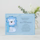 primeiro aniversario Leão Convite de festas com um leão azul segurando o número 1. Adicione os detalhes da sua festa para o convite perfeito para o primeiro aniversário.