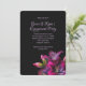 Lily fica em convites pretos de pré-festa de casamento. Flores cor-de-rosa escuro e roxas no canto inferior dos convites pretos podem ser usados para qualquer tipo de chá, festa de noivado ou janto de ensaio. O texto é pálido púrpura com nomes e tipo de festa em script maior. Use a opção de download instantâneo para convidar convidados digitais.