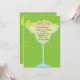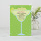 Comece a comemorar com este convite de moda. Seja um churrasco de quintal ou apenas coquetéis, este é o convite perfeito para você! Ele tem um fundo verde com verdes limões pequenas. Há um grande cheio de vidro margarita com um pedaço de limão no copo. Veja os muitos outros designs e produtos desta linha. ©JW Ilustrations