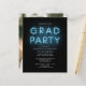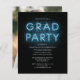 Formando o convite para Festa de formatura de sinal azul-neon com o popular texto branco e a foto que você pode mudar facilmente. Altere a data, os detalhes da festa e adicione a foto no verso clicando no botão "Personalizar"
