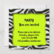 O convite de festas agradável do design da pele da zebra, uma beira da zebra comibned com um fundo do verde limão.
