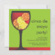Não há nada melhor comemorando Cinco de Mayo do que um vidro delicioso do sangria e de bons amigos para compartilhar d com. Características deste design da festa uma silhueta preta contemporânea de um cheio do wineglass do sangria vermelho, com fatias de laranjas, de limões e de uvas flutuando para dentro, contra um fundo brilhante e alegre do verde limão.