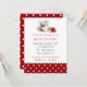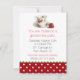 convite de festas de chá Na moda, com um padrão de bolinhas vermelho e branco, na parte inferior, com uma borda verde recortada. Uma foto de uma bonito xícara de chá e morango decora o topo do convite. Personalize o texto personalizado do evento.