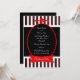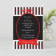 Esta elegante faixa negra e branca com um toque de Convite de festas de Natal vermelho cria um convite muito elegante para a sua festa de Natal e apresenta os detalhes da sua festa de Natal dentro a frame. Copyright Hhenisdomofpaper