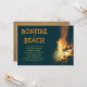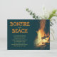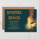 Fogo na praia convite de festas com texto personalizado. Cartões azuis escuros com imagem de fogueira e texto impresso amarelo. Grandes letras laranja no topo e fácil personalizar o parágrafo de informações no fundo. O reverso contém uma imagem de areia de praia. Use para reunir amigos ou celebrar um evento especial.