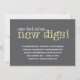 Este partido bonito, ocasional do housewarming convida o divertimento de características, a rotulação lunática que lê "a verificação vinda para fora nossas escavações novas!" contra um fundo das cinzas de carvão vegetal.