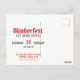 Concurso de cartão postal de outubro com um loiro sorridente Bartender com salsichas e pretzel em mãos atrás do bar com canecas de cerveja de cerveja alemã. Jovem garçonete bonito que dá boas-vindas sorrindo segurando pretzels em mãos, atrás do bar. No topo do bar estão os copos de cerveja e o prato de salsichas bávaras. A loira cabia uma linda jovem vestida de vestido tradicional bávaro azul. Cerveja barril e bandeiras em fundo.