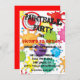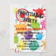 Pronto, aponte, fogo! Convite de aniversário de pinball super legal com muitas pinturas coloridas e touro e tipografia divertida. Ilustração desenhada à mão por McBooboo.