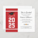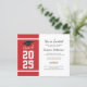 Adicione seu ano de graduação, nome e detalhes do local com data para este moderno fundo vermelho e branco negrito com convite de festa de formatura de tipografia negra usando nosso botão "Personalizar".