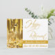 Este convite de festas da aposentadoria ajusta o humor para um grande partido em honra do aposentado. Este é um convite perfeito do marco miliário. Estes branco e convite de festas elegantes, sofisticados, tradicionais da aposentadoria do ouro são feitos em um design chique do branco e do ouro com vidros do champanhe e fita do ouro. Você pode facilmente personalizar este convite de festas feliz chique, elegante da aposentadoria com sua própria informação pessoal enchendo no modelo dado. Nosso partido de aposentadoria tradicional convidam trabalhos bem para incorporado, o negócio, a família ou os amigos que estão hospedando o partido de aposentadoria. O preço razoável cabe o orçamento de todo o anfitrião ou hospedeira