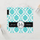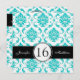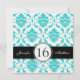 Preto, doce azul e branco do Aqua do damasco dezesseis convites do aniversário. Design da disposição por Elke Clarke ©2012. Gráficos licenciados. Personalize com seus 16os detalhes da festa de aniversário e informação pessoal. Este convite de dezesseis aniversários é uma maneira fabulosa, feminino de anunciar o doce da sua filha 16 celebrações do aniversário. Para outras cores do damasco contacte por favor o desenhista.