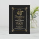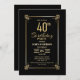 Um convite de festas de aniversário de 40 anos preto e ouro moderno. Clique em "Personalizar este modelo" para adicionar suas próprias informações.