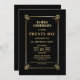 Um convite de festas de aniversário de 21 anos preto e ouro moderno.
