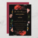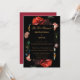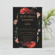 Recepção de casamento Convite de festas Vermelho escuro e Preto Floral. O texto colorido de cobre é totalmente personalizável. Fundo da ventoinha. A parte de trás do cartão está definida em um fundo vermelho escuro, mas você pode escolher qualquer cor que quiser. Nossa coleção de suítes de casamento ALEXANDRIA está cheia de flores em fundo preto e vermelho, tudo usando um texto de cor de cobre. Moody, elegante e moderno.