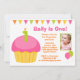 Este adorável Convite de aniversário pode ser personalizado com a foto do seu filho. Apresenta um cupcake rosa e balões de aniversário. Faz um excelente manter a primeira festa de aniversário do seu filho.