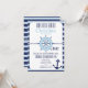 O convite para o primeiro aniversario deste rapaz apresenta uma bela âncora, corda, barco a vela e um grande número num fundo listrado branco e marinho azul e azul claro. Está pronto para ser personalizado e é adequado como convite de primeiro aniversario de menino e particularmente adequado para uma festa de aniversário temática náutica.