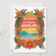 Convite de festas de reggae colorido com um pôr do sol insular cercado por flores tropicais