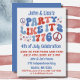 Divirta-se comemorando o 4 de julho com este design de "Partido Como se fosse 1776". Ele tem um esquema de cores vermelho, azul e esbranquiçado para ajudá-lo a dar uma vibração americana nos anos 60. É a escolha perfeita para aqueles que querem celebrar o Dia da Independência com estilo. Este convite é completamente personalizável para que você possa fazer com que seu Partido da Independência convide exatamente como quiser.