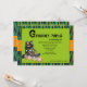 Um design de moda com um fundo contemporâneo em azul e verde e sobreposto por uma banda de abóbora e um painel verde. Um skate embelezado embeleja o convite.O cartão é fácil de personalizar com seu texto, fonte, cor da fonte e escolha de seis tipos de papel.