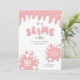 Convite de festas de lodo cor-de-rosa rosa. Divertido, brilhante convite de festas moderno. Parte de uma coleção correspondente.