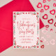 Quadro de Dia de os namorados vermelho e verde no convite de festas personalizável, rosa-claro. Corações vermelhos e tipografia.