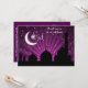 Ilustração islâmica com silhuetas da lua, de estrelas e de uma mesquita em um céu nocturno roxo.