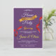 Convite de festas roxo e dourado