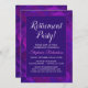 Elegante Convite de festas de aposentadoria roxa Personalize este elegante convite de festas roxo de aposentadoria com o nome da pessoa que celebra um dia muito especial em sua vida. Uma aposentadoria é um marco especial para celebrar. Marque a ocasião criando uma festa e enviando convites para todas as pessoas especiais em sua vida. Compre nossa loja por presentes que você pode personalizar com este mesmo design elegante em canecas de aposentadoria/presente de aniversário, etiquetas de vinho, cartões de aniversário, suprimentos de festas e decorações.