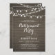 Celebre seu dia especial com este convite de festas de aposentadoria rústico! Este design apresenta tipografia de na moda script e luzes de cordas em um fundo de madeira rústica. Perfeito para uma festa de jardim, festa de celeiro ou festas de outono.