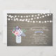 Celebre seu dia especial com este modelo de convite para na moda. Este design apresenta luzes de cordas, jarro de pedras e buquê de flores com um fundo de madeira rústico.