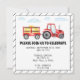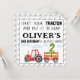 Garoto de trator vermelho aquarela 1rua ou convite de festas segundo aniversário, convite quadrado.