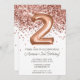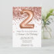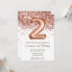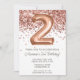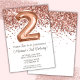 Convite de festas de segundo aniversário Dourado e convite de festas-ouro moderno e elegante rosa para uma menina de 2 anos com escrevendo moderno de escrita e balões de folha de papel divertida.