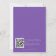 Convite de festas de Casamento de Código QR Simples e Moderno Roxo da Noite. A cor e o tipo da fonte podem ser alterados através do menu de edição. Você também pode alterar as cores do texto e do plano de fundo em ambos os lados, se desejar. Adicione seu código QR ao seu site de casamento no verso como uma opção conveniente para seus convidados para RSVP. Os códigos QR podem ser criados gratuitamente on-line. Basta pesquisar "Criador de código QR" e selecionar um dos criadores livres. Você também pode remover o código QR se desejar.