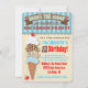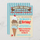 O antigo salão de sorvete inspirava convite de aniversário com uma ilustração de colheres de sorvete em diferentes padrões empilhadas umas sobre as outras com tipografia divertida, varinha listrada, faixa e cerejas, todas num fundo de aqua vintage. Excelente de aniversário ou sorvete social. Ilustração desenhada à mão por McBooboo.