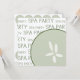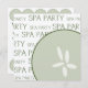 Um excelente de convite de festas de spa para a noite das meninas, chá de panela, festas de aniversário ou a qualquer hora. A frente mostra a ilustração de uma fatia de pepino à direita. O texto em segundo plano diz "SPA PARTITY". O lado oposto apresenta fatias de pepino na parte superior e inferior. Personalize o texto verde com detalhes da sua ocasião.