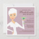 Uma bonito noiva de olhos azuis tormenta seus amigos pensativos com um pequeno coquetel delicioso enquanto escondido em seu robe branco peludo por um dia de pampering no spa. As noivas podem ficar tão estressadas, por que não jogá-la uma festa especial da Bachelorette Spa para ajudá-la a relaxar! Perfeito para madrinhas também! Aqui nossa noiva está tão aconchegante em branco, cabelos em uma toalha, colocados contra um fundo de lavanda macio e suave.