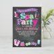 Nosso Convite de festas Colorido, Spa é perfeito para qualquer festa de tema spa! Este design apresenta letras de padrão bonitas e coloridas e gráficos de tema termal, como esmalte, maquiagem, chinelos, loção, pepinos e uma máscara ocular. Também está disponível no nosso compro com um fundo branco.